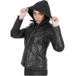Women Becky Hooded Biker Leather Jacket | Genuine Sheep Leather | Boston Harbour - Boston Harbour
